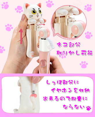2018最新 Android/iPhoneも使用可能 セルカ棒 iphone8 超ミニ 有線式 2018年仕様 kjstar ミラー付き iPhone7 じどり棒 自撮り棒 自分撮り 変換 アダプタ ライトニングケーブル セルフィ スティック スマホ コンパクト セルカレンズ セルカ棒 猫