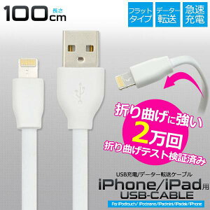 充電器 期間限定ポイントのご使用に【おすすめ】【オススメ】【母の日】【父の日】【敬老の日】【プレゼント】【通販】【ボーナス特集】折り曲げテスト2万回検証済み!折り曲げに強いiPhone/iPad用USBケーブル 100cm 断線しやすいといわれる端子の根元の、折り曲げテスト2万回に合格した、 折り曲げに強く、断線しにくいiPhone/iPad用USBケーブル! 折り曲げに強いのでケーブルを巻いて持ち運びしたり、 充電したままスマホを使用したりする時の動きにも強く安心です。