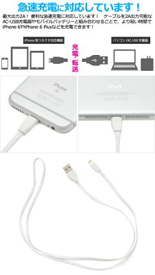 ケーブルデザインは、絡みにくいフラットタイプを採用! また、最大出力約2Aなので、急速充電にも対応しています。