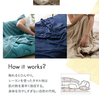 さわるとひんやり接触涼感のあるレーヨンを使用したソフト涼感タオルケット。